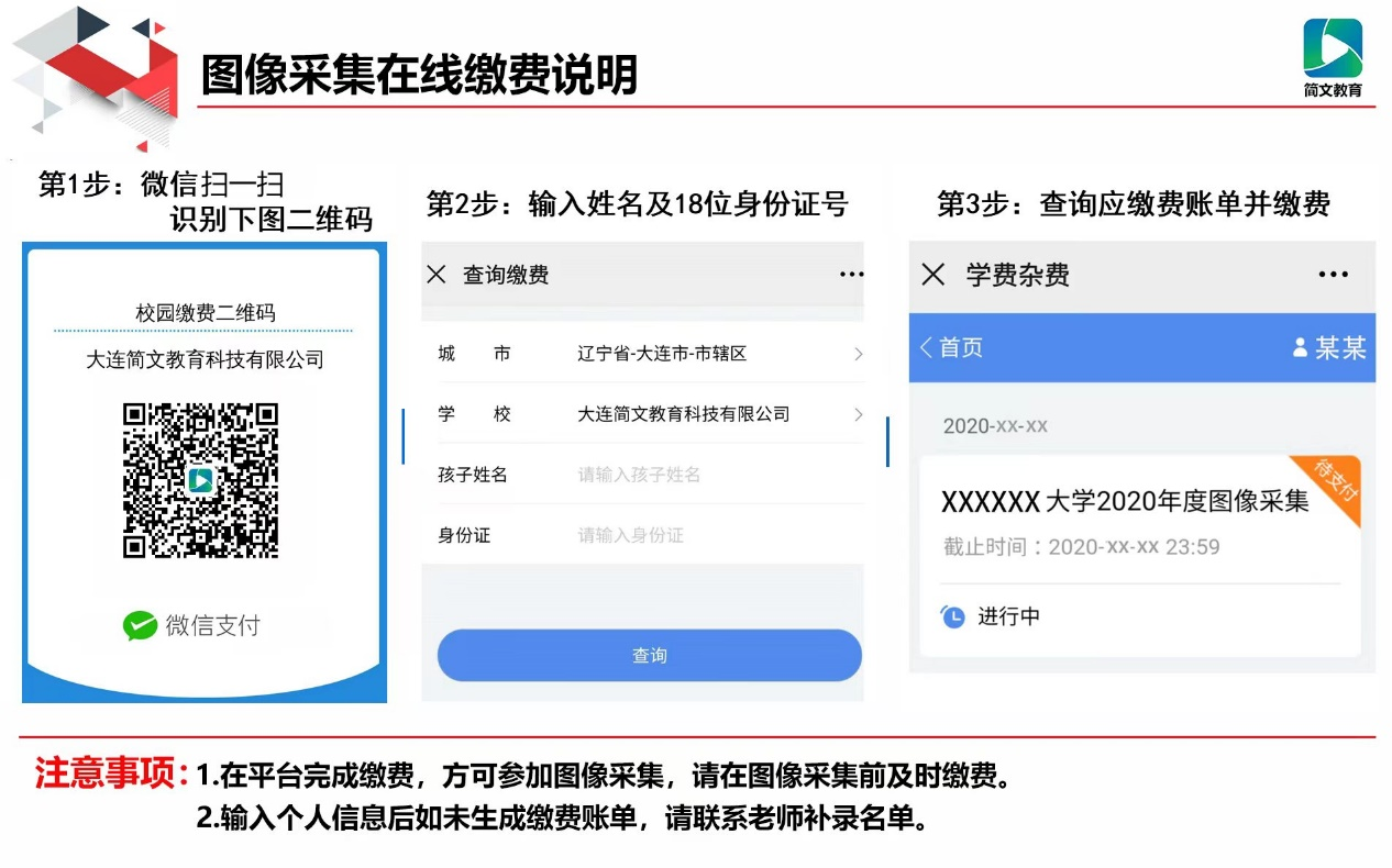 2、缴费标准:电子图像信息采集收费统一标准为17元/人,费用由大连简文教育科技有限公司直接收取。